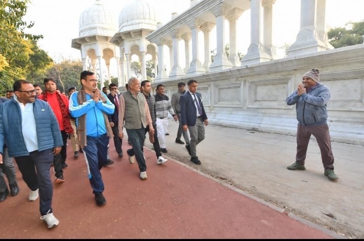 जयपुर। मुख्यमंत्री भजनलाल शर्मा अल सुबह बिना किसी पूर्व सूचना के जवाहर सर्किल पहुंचे और मॉर्निंग वॉक किया। हैरानी की बात यह रही कि वे बेहद कम सुरक्षा व्यवस्था और बिना निर्धारित प्रोटोकॉल के आम लोगों की तरह सैर के लिए निकले।