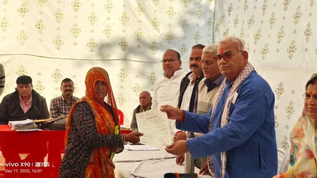 शिविर के दौरान मंत्री ने 8 ग्रामीणों को आवासीय पट्टे, 18 लाभार्थियों को प्रधानमंत्री आवास योजना के स्वीकृति पत्र तथा एक दंपति को विवाह पंजीयन प्रमाण पत्र प्रदान किए। उन्होंने कहा कि सरकार की मंशा है कि योजनाओं का लाभ अंतिम व्यक्ति तक पहुंचे और प्रत्येक आवेदन का समयबद्ध निस्तारण हो।