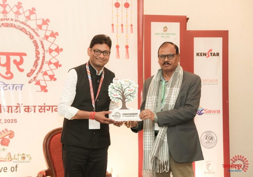 जयपुर। झारखंड के टाटा नगर, जमशेदपुर में विद्यादीप फाउंडेशन के तत्वावधान में आयोजित दो दिवसीय जमशेदपुर लिटरेचर फेस्टिवल–2025 में जयपुर शहर के प्रतिष्ठित लेखक दंपति डॉ. राकेश कुमार एवं डॉ. प्रणु शुक्ला को उनके उल्लेखनीय साहित्यिक योगदान के लिए सम्मानित किया गया। इस साहित्यिक महोत्सव में देशभर से साहित्यकार, शिक्षाविद् एवं रचनात्मक क्षेत्र से जुड़े विद्वानों ने सहभागिता की।