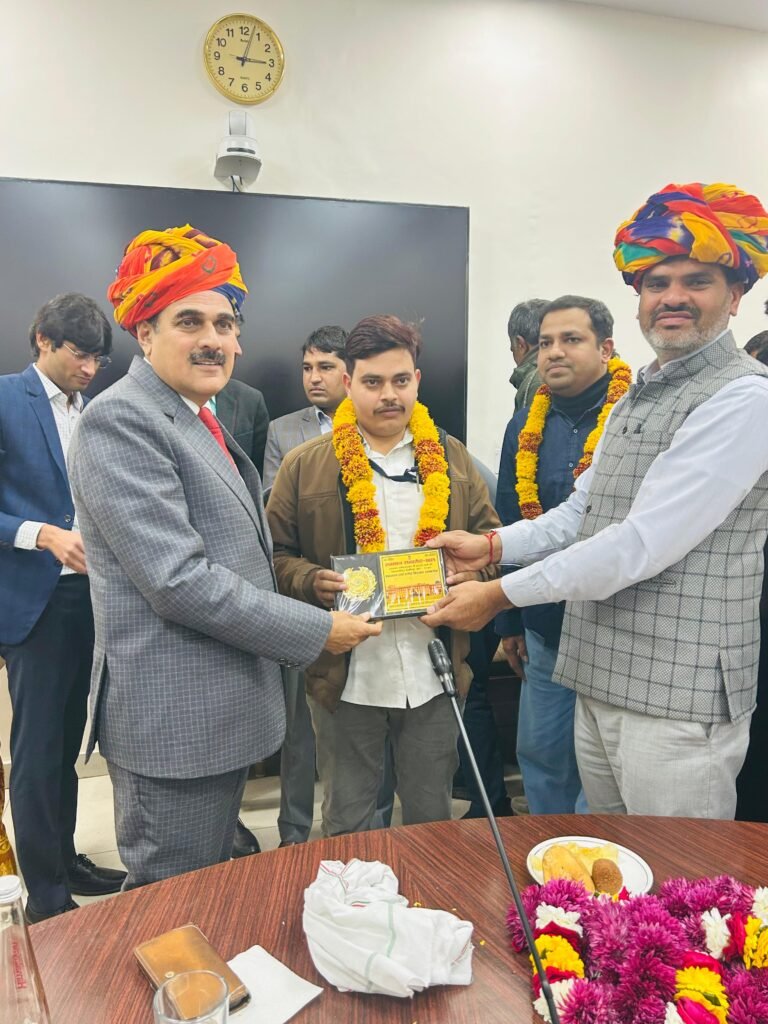 जयपुर। राजस्थान शासन सचिवालय में एसटी वर्ग के नवनियुक्त लिपिकों के लिए ‘सम्मान समारोह एवं नववर्ष स्नेह मिलन’ कार्यक्रम का भव्य आयोजन किया गया। इस गौरवपूर्ण अवसर पर सवाई माधोपुर जिले के मांगरोल गांव निवासी और वर्तमान में मुख्यमंत्री कार्यालय में कार्यरत मानसिंह मीना को उनकी उत्कृष्ट सेवाओं के लिए विशेष रूप से सम्मानित किया गया।