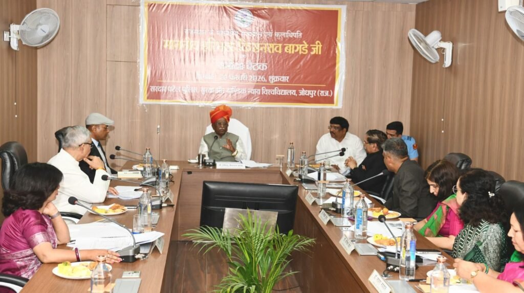 जयपुर। राज्यपाल एवं कुलाधिपति हरिभाऊ बागडे ने सरदार पटेल पुलिस, सुरक्षा एवं आपराधिक न्याय विश्वविद्यालय में अधिकारियों की विस्तृत समीक्षा बैठक की। बैठक में विश्वविद्यालय की शैक्षणिक प्रगति, परिणामोन्मुख अनुसंधान, परीक्षा प्रणाली, नई शिक्षा नीति के क्रियान्वयन, सामुदायिक सेवाओं तथा छात्र कल्याण से जुड़े विषयों पर विस्तार से चर्चा की गई।